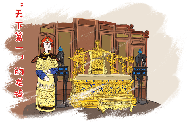 这把“天下第一”的龙椅就是安设在故宫博物院太和殿的雕龙髹(xiū)金大椅。它通身金光璀璨,高高在上。就像在电视剧里看到的那样,清朝皇帝们就是坐着它举行登基大典和各种重要的国家活动,接受文武百官和番邦使臣的朝拜。