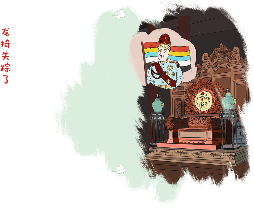 原来,1915年,袁世凯篡权称帝,用一张半中式半西式的大椅,代替了殿内的雕龙髹金大椅。在袁世凯这把椅子的椅背上,有一块白缎绣成的“袁世凯帝国”的国徽。后来,这块白缎因为年久渐渐开裂,里面露出的填充物竟然是稻草。