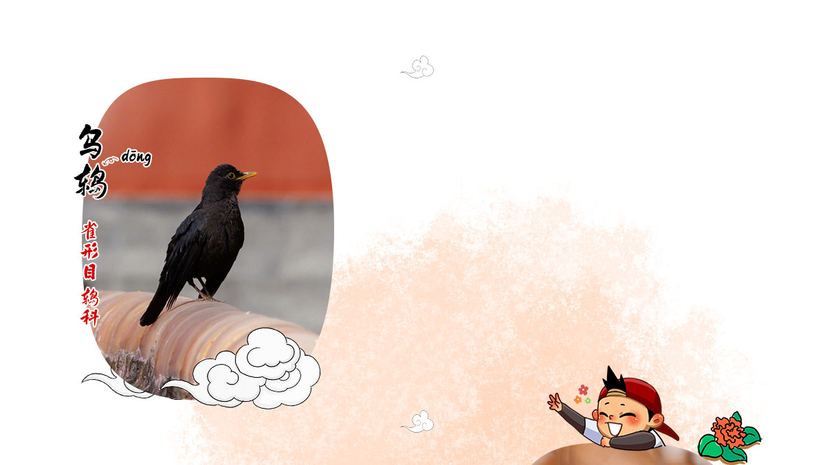 乌鸫是故宫春季最常见的鸟类之一,鸣声嘹亮,春天叫声尤其婉转多变。古人认为乌鸫能“反复百鸟之音”,称其为“百舌”。在故宫开阔的草坪,说不定能看到乌鸫和蚯蚓拔河哦!
