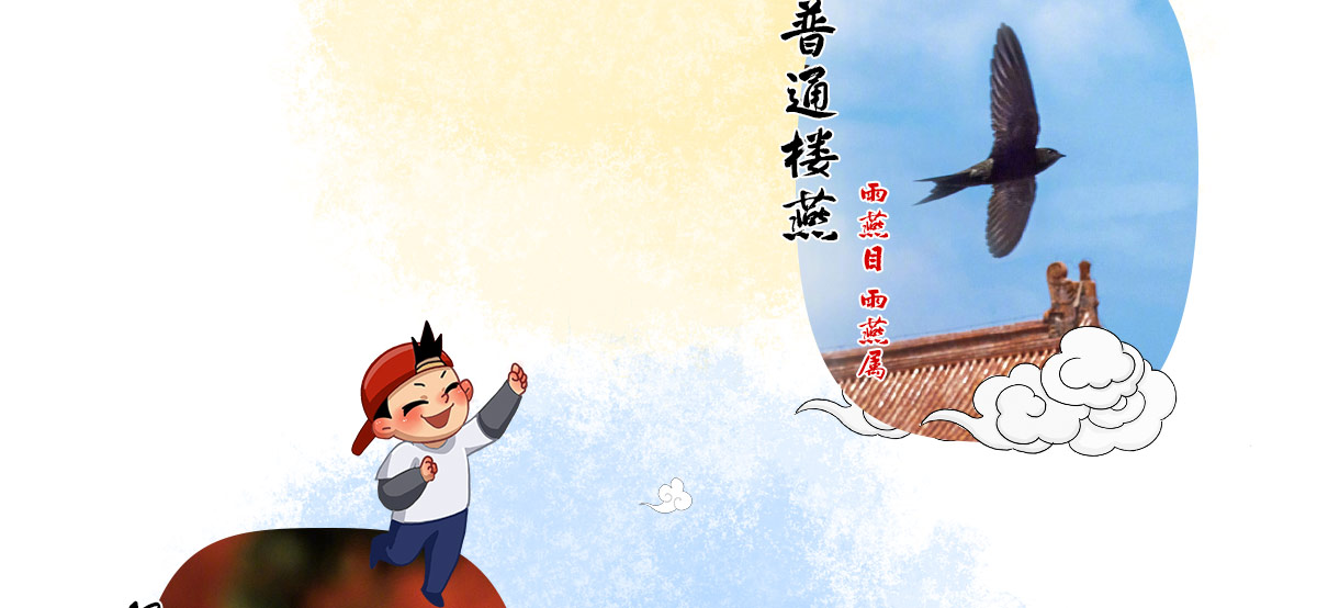 普通楼燕又称北京雨燕,因喜欢在高大的古建筑中筑巢而得名。它们喜欢边飞边叫,叫声尖锐且穿透力很强,常集群活动。楼燕和其他雨燕一样,无法从地面起飞,需从高处俯冲而下才能飞起来,因此,在救助放生时,注意勿从平地抛向空中,以免造成楼燕摔伤。在夏季的故宫,多留意天空,说不定能捕捉到它们的身影哦!