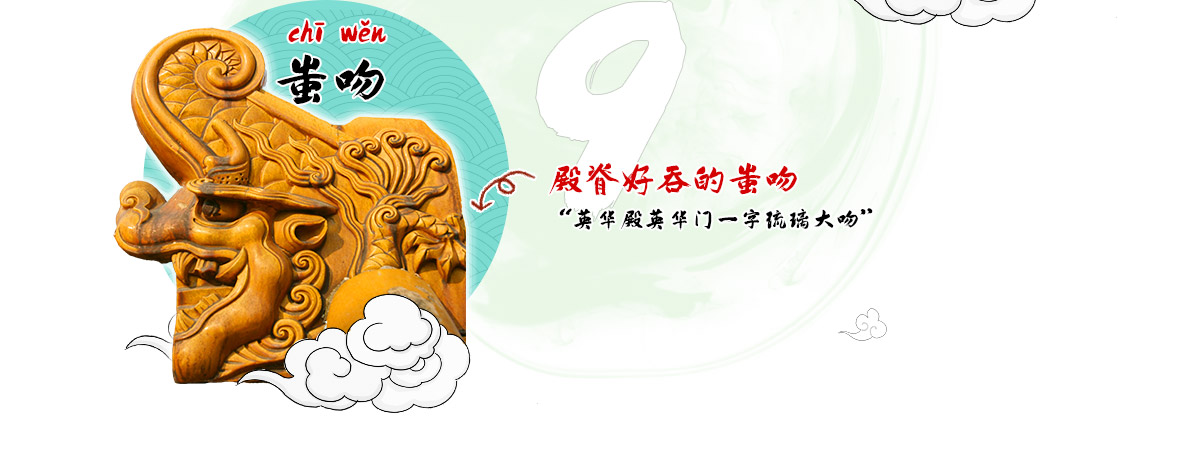 紫禁城殿脊两端的龙形的吞脊兽是蚩吻,传说前身是海中的鱼虬,它的技能是一张激浪降雨的大嘴,能够为古建筑避火消灾。