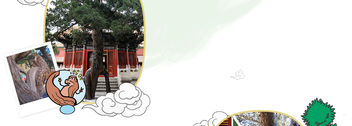 御花园里能看到奇特的“连理柏”和“人字柏”,它们是古代高超园艺技术的见证。连理柏是将两株柏树的枝杈进行了“靠接”处理,而人字柏是由一株树木造型而形成的。天一门的人字柏特别有趣,树干上修剪后的枝杈,姿态像极了一只猕猴。