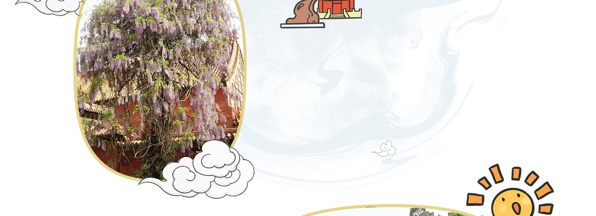在紫禁城里,枯死的古柏也没有被直接伐除,栽植上藤萝等攀援植物,花开时节,满树繁花,与古柏融为一体,就有了枯木逢春的雅趣奇观。