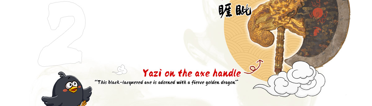 Yazi’s name means “to glare angrily,” reflecting its fierce and combative nature. That’s why you’ll often see yazi on the hilt or handle of swords and knives, with the blade emerging from its mouth, making weapons look super cool and powerful.