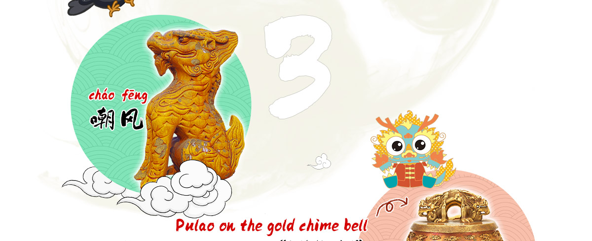 Chaofeng is the explorer among the sons of the dragon. It likes to perch high up and look at everything below. If you visit the Forbidden City in Beijing, look up at the roof corners and you might spot it there! It makes buildings look prettier, and people believe it can keep homes safe.