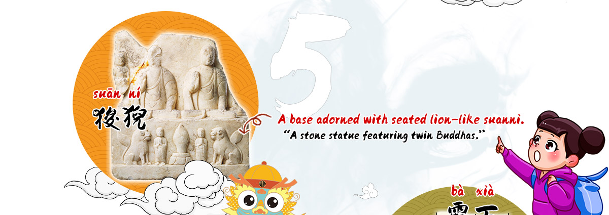 Suanni looks a bit like a lion. It likes to sit quietly in smoky places, like temples or on incense burners. It may look tough, but it is actually very gentle.