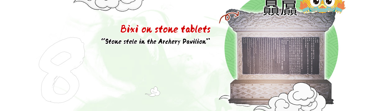 Baxia is super strong! It is said that baxia can carry mountains on his back. It looks like a mixture of a turtle body and a dragon head, symbolizing longevity and good fortune. People place large stone tablets on its back because they believe it can keep them standing forever.