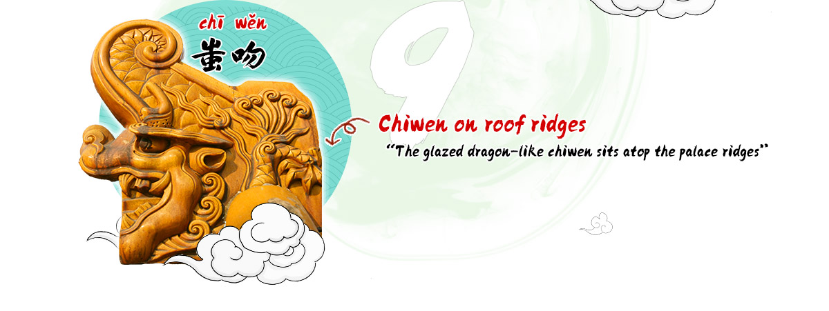 The dragon-shaped beast at the ends of the Forbidden City’s roof ridges is chiwen. It is said to have originated from a sea creature and has a large mouth that can summon rain, protecting ancient buildings from fire.