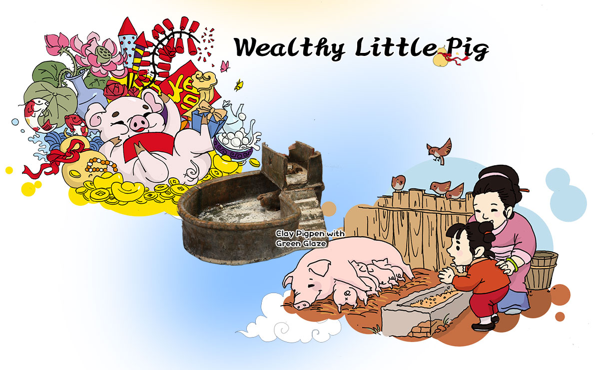 For ancient Chinese people, who deeply valued the afterlife, wealth remained important even after death. Graves were often furnished with offerings of whole pigs, pig heads, or pig jawbones. During the Han dynasty (202 BCE –220 CE), jade pigs, clay pigs, and even clay pig pens were placed in tombs, not only to reflect the wealth of the deceased but also in the hope that they would continue to enjoy abundance in the next world.