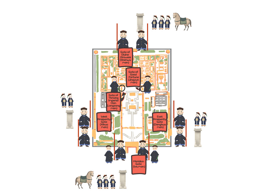 Despite the strict gate protocols, incidents such as the Chen De Assassination, the Eight Trigrams Uprising of 1813, and even the occupation of the Forbidden City by the Eight-Power Allied Forces in the period of Emperor Guangxu (r. 1875–1908) demonstrate that security based solely on protocol is not absolute. The true fortress lies in the strength of a nation and the unity of its people.