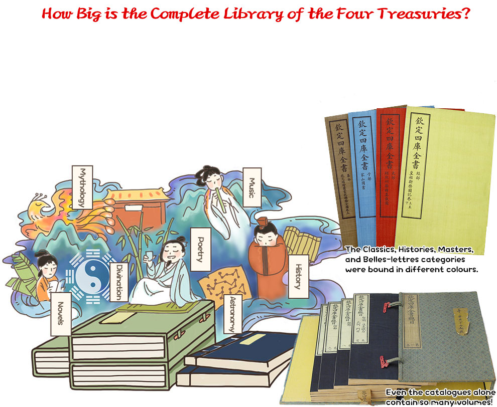 You may have heard this book series title in period dramas and Emperor Qianlong commissioned the compilation of it. But what does “Four Treasuries” mean? This classification is rooted in China’s ancient system of organising books into four main categories: Classics (jing), Histories (shi), Masters (zi), and Belles-lettres (ji). “Classics” refer to the Confucian canon; “Histories” are official histories written by historiographers; “Masters” encompass writings of various schools of thought; and “Belles-lettres” are anthologies of poetry and literature.