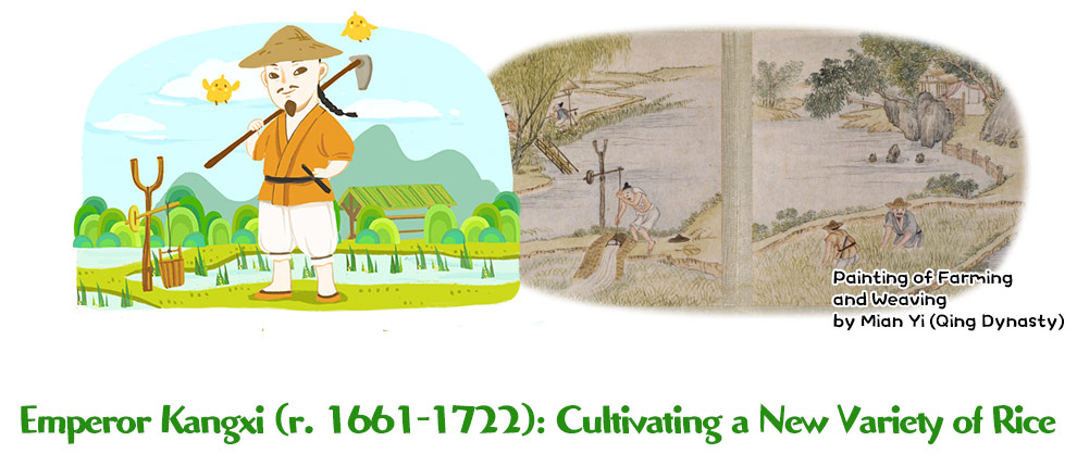 Fengze Garden was planted with various rice crops, which were harvested each September. One June, Emperor Kangxi noticed a particularly tall stalk while strolling along the rice fields just as the rice plants were sprouting. Upon closer inspection, he found that its grains had already ripened. He harvested this stalk and set it aside, deciding to plant its seeds again the following year to see if they would ripen early again. The next year, by June, the test crop was indeed ripe, with full, plump grains. From then on, Fengze Garden grew this early-ripening rice variety annually, producing enough to supply the Imperial Kitchen.