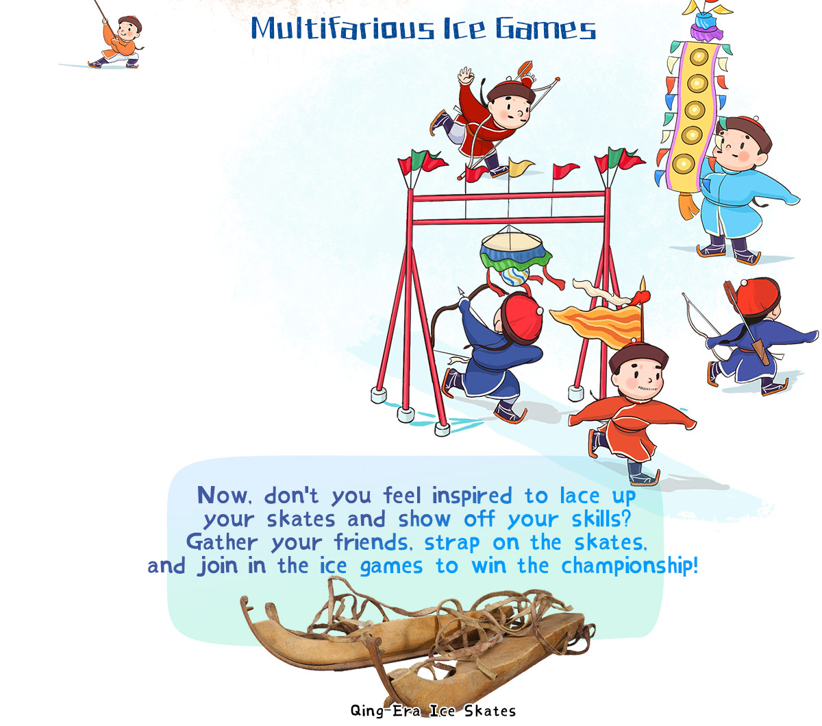 Do you enjoy ice skating? This season is just the perfect time. Perhaps you assume ice skating is a “foreign novelty”, but let me tell you, ice sports were already popular in ancient China. Back then, it was known as “bingxi,” or “ice games.” Now a treasure housed in the Palace Museum, Ice Games Painting, can enable us to enjoy a “live show” of royal ice games during the Qing dynasty (1616-1911).