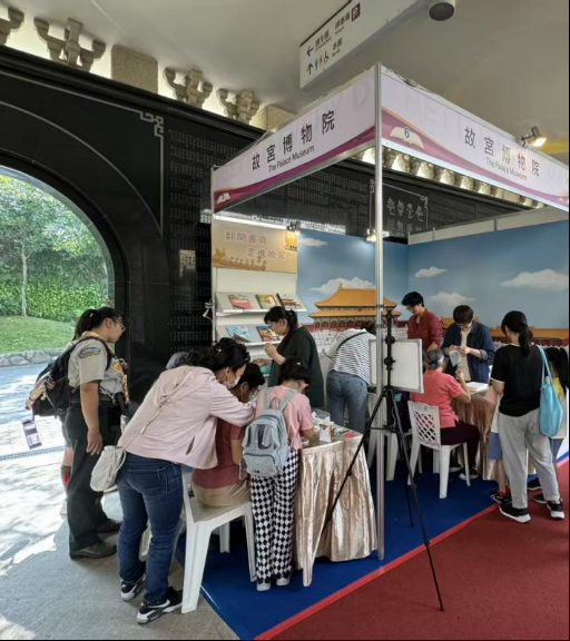 在静态展示区域内,故宫博物院以传统红墙黄瓦元素打造的展位格外醒目。这里不仅展示了《哇!故宫的二十四节气》《我要去故宫》及《了不起的故宫宝贝》等书籍和教育资料的繁体中文版、英文版及多语种版本,还特别设置了“博‘骨’通今”互动打卡区,《清明上河图》互动创作、传统纹样杯垫制作等趣味体验。博“骨”通今甲骨文打卡区通过轻松有趣的问答形式,为观众普及甲骨文知识,增进台湾地区民众对汉字起源发展的理解与认识;“一幅画·一座城”和“蝶寿同春”两项快闪活动,吸引大量观众驻足并踊跃参与,或参照《清明上河图》描绘的市井百态创作自己的“汴京故事”画作,或运用中国传统纹样,亲手装饰精美的陶瓷杯垫。短短五天内,就有超过1500组家庭参与了快闪活动体验,现场人气持续居高不下。