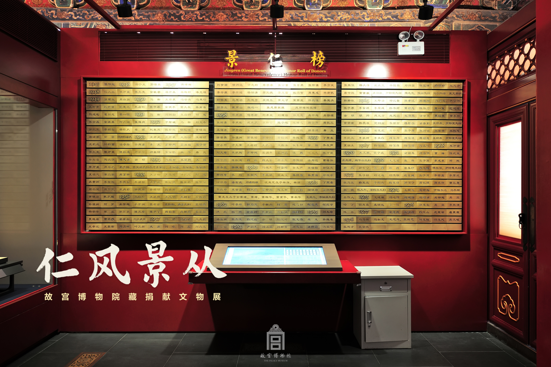 景仁宫是故宫博物院于2005年开设的捐献专馆,立有“景仁榜”镌刻捐献者名录。1945年至今,故宫博物院已累计接受社会各界800余人次捐献的3.5万件/套文物。此次举办的“仁风景从——故宫博物院藏捐献文物展”是在景仁宫举办的第10个捐献文物主题展览,同时也是故宫博物院建院以来的第49个捐献展。展览展出100位捐献者所捐展品逾百件,包括郑振铎、孙瀛洲等捐献大家的捐献文物,展品类别包含书画、陶瓷、铭刻、玉石器、金银器、雕塑等,展期一年。