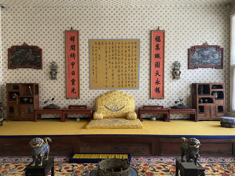 原状陈列式展览是故宫博物院极具特色的一种展览形式,简单地说就是将文物放回到历史场景中原来的位置,还原古人的生活场景。复原陈设的主要依据,就是清代宫廷所遗留下来的不同年代的陈设档案。但是,也有一些宫殿没有留下任何一本陈设档案可以参考,也需要复原,寿康宫就是一例。