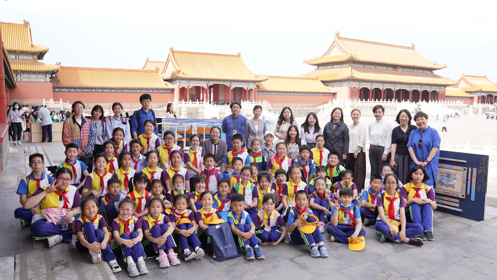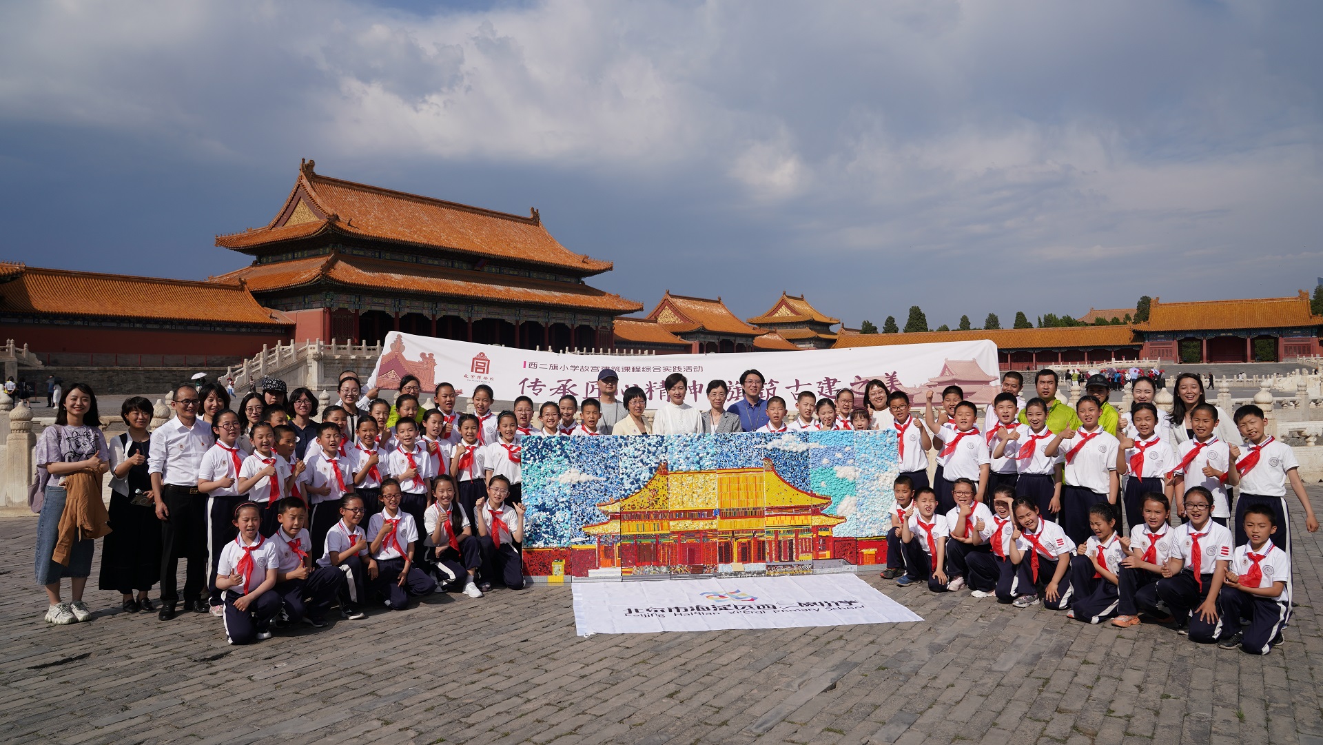 来自北京西二旗小学的教师带领学生,在太和门广场开展了一堂以“传承匠心精神,旗筑古建之美”为主题的综合实践课。学生们实地观察,反复试验,与之前在学校中学习过的故宫屋顶探究课程相结合,利用各种装饰材料,拼贴出故宫太和殿模型,用艺术创新的方式凸显出古建筑屋顶之美。西二旗小学自2018年就与故宫开展了馆校合作课程,本学期更是以跨学科的方式进行课程设计,探究古建筑的科技文化和营造技艺。本次活动也是馆校合作课程的一次中期成果汇报。