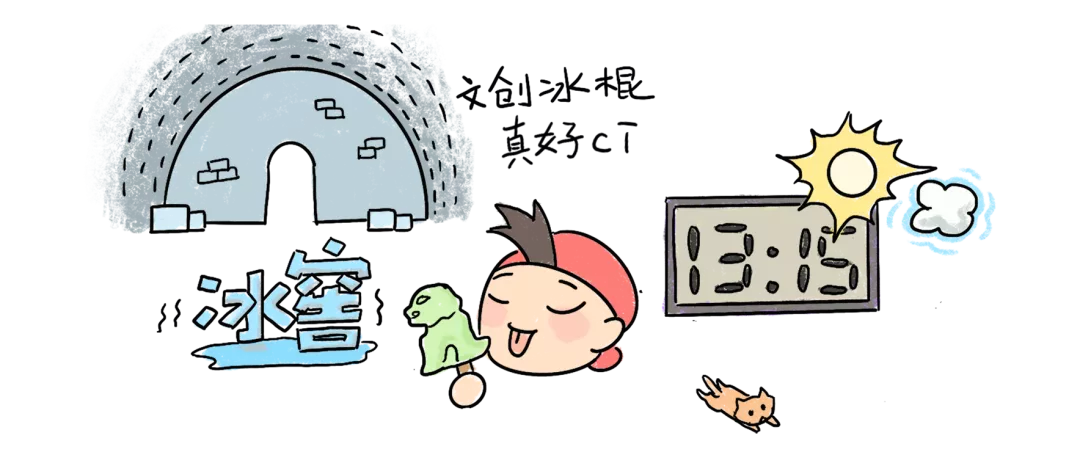 除了展览,还有必不可少的文创产品。天气炎热,听说故宫的文创脊兽雪糕很有名,走,去冰窖看一看!