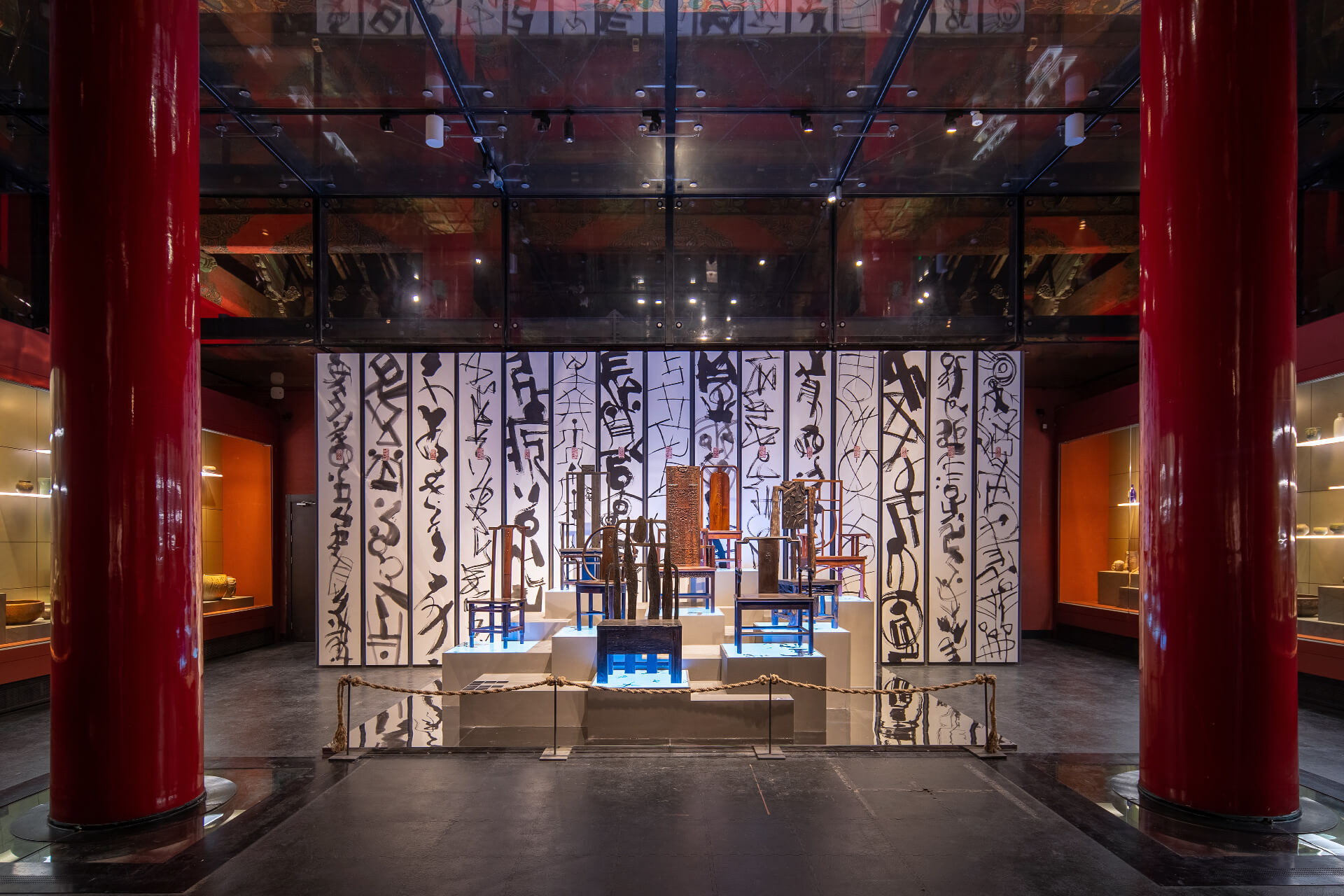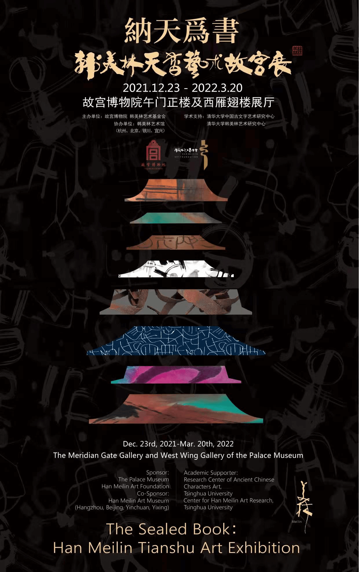2021年12月22日,“纳天为书——韩美林天书艺术故宫展”在故宫博物院午门正楼展厅开幕。展览由故宫博物院、韩美林艺术基金会共同主办,韩美林艺术馆协办,清华大学中国古文字艺术研究中心、清华大学韩美林艺术研究中心提供学术支持。