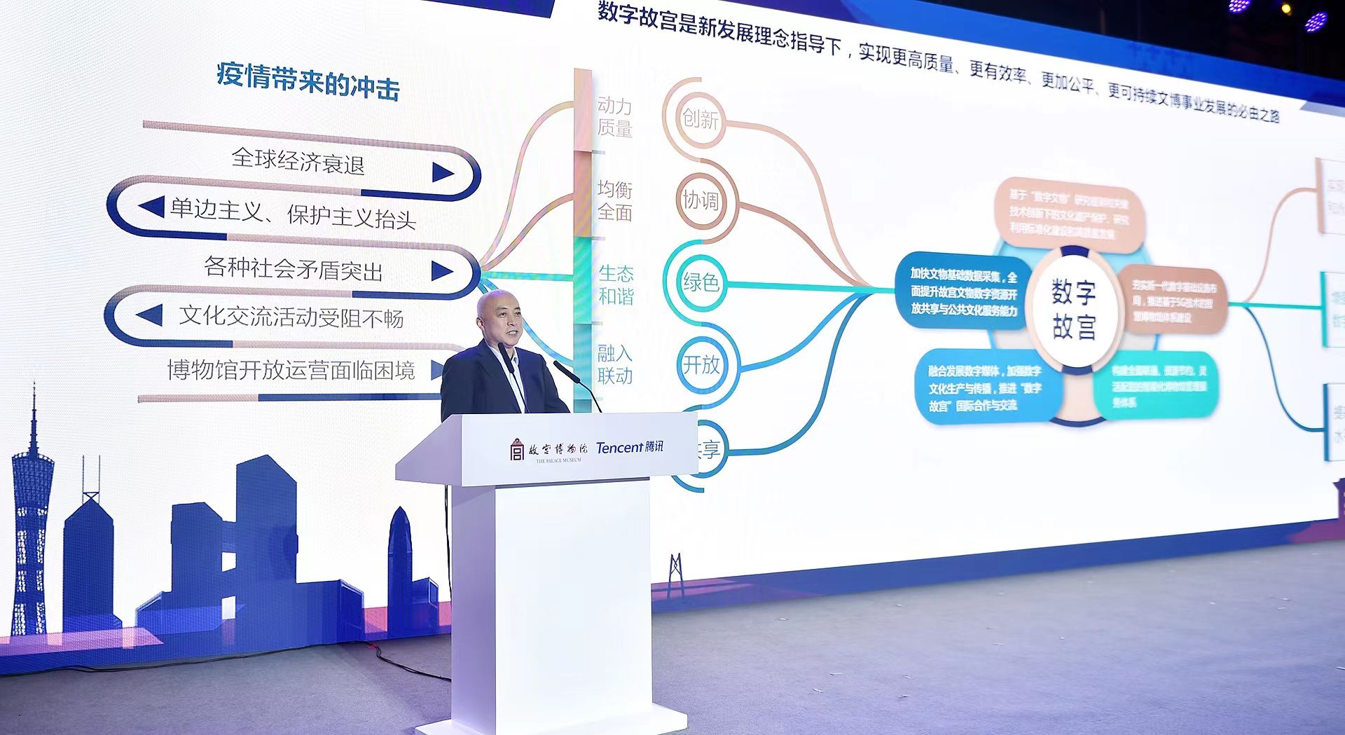 腾讯集团副总裁程武在致辞中表示:“2016年,故宫携手腾讯探索文博数字化,一方面通过‘新文创’打造了古画会唱歌等刷屏级作品,让传统文化成为年轻一代的潮流文化;同时以‘新科技’助力文物数字采集等数字基础设施,并打造数字故宫等微信小程序,让文物在云端触手可及。助力中国文博插上了一对新科技和新文创的翅膀,走出了一条有中国特色的创新模式,为全球文博发展贡献了中国方案,这也是腾讯践行‘科技向善’使命的重要实践。”