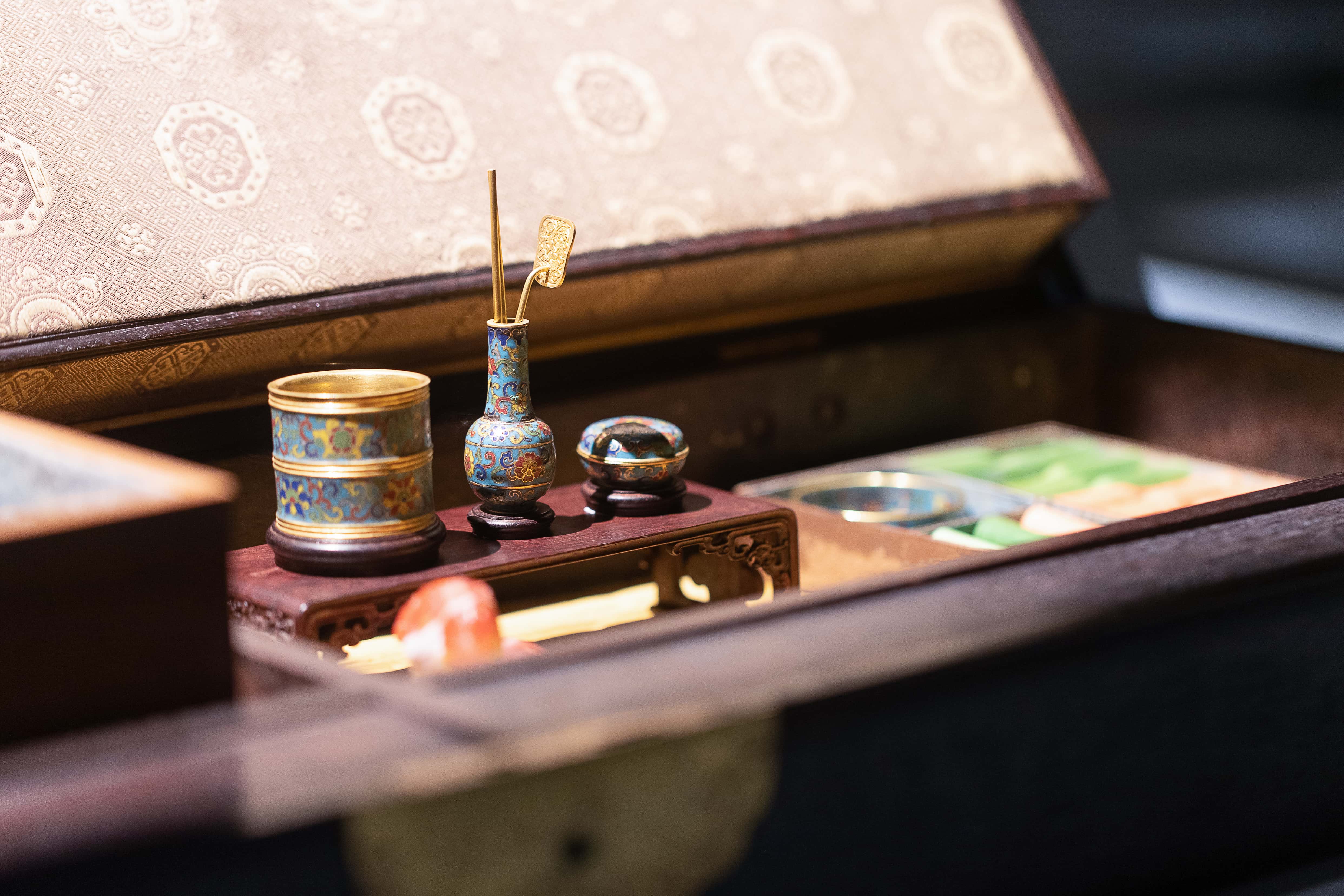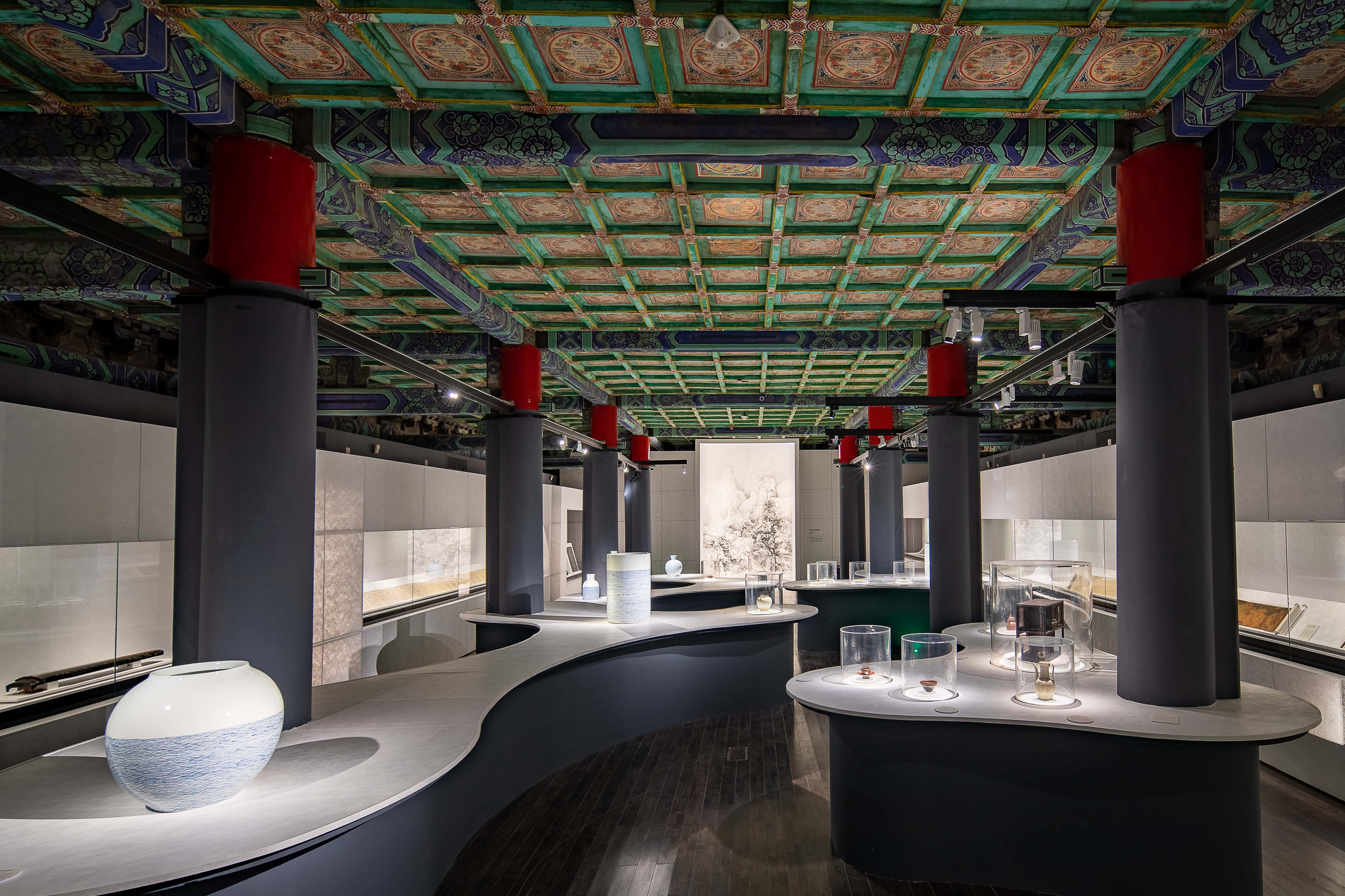此次展览第三单元入口,以还原“香雪”书房意境为初衷而设计的沉浸式体验展示,成为公众了解紫禁城原状空间的新方式。“香雪”是养性殿西暖阁的一间书房,由乾隆皇帝亲自参与营造,仿养心殿梅坞而建,以白石依墙堆砌出山景,表达了“仰观香雪海,坐觉太虚宽”的精神意趣。展览引入裸眼3D、体感交互投影等技术,提供给观众沉浸式的空间感受。