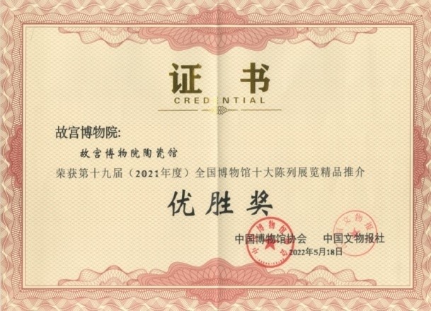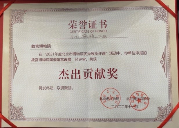 故宫博物院“陶瓷馆常设展”荣获 2021年度北京市博物馆优秀展览“杰出贡献奖”