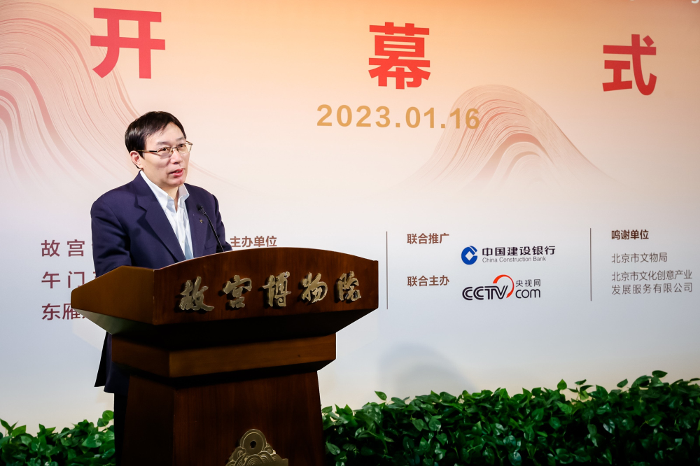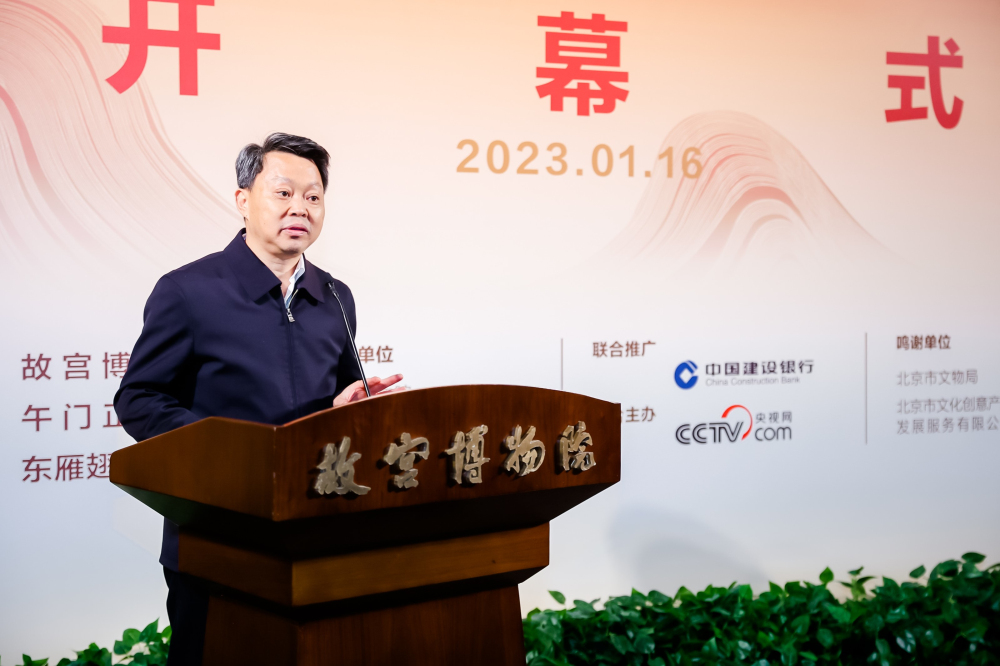 文化和旅游部党组成员、故宫博物院院长王旭东,故宫博物院党委书记、副院长都海江,文化和旅游部非遗司司长王晨阳,国家文物局办公室副主任郑绍亮,北京市文物局党组书记、局长陈名杰,中国建设银行股份有限公司董事会秘书胡昌苗,央视网党委副书记、总经理王冰松,北京市文化投资发展集团总经理徐哲,以及故宫博物院领导班子成员出席展览开幕仪式。