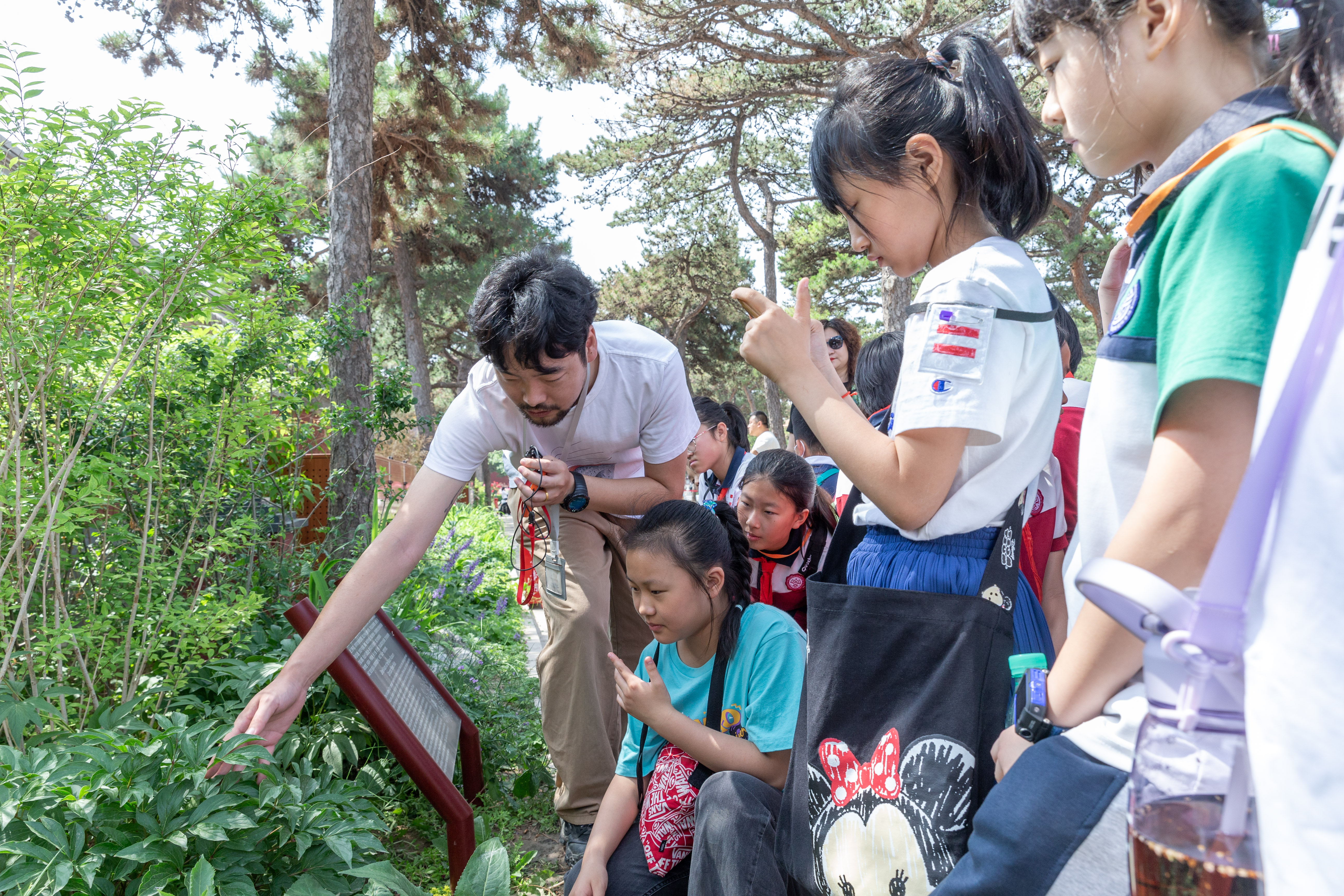 为了深化学生们对“故宫零废弃”和生态花坛的理解,故宫博物院还联合生态花坛项目的合作机构万科基金会,现场为师生提供了“故宫生态花坛与生物多样性”主题导览,希望通过艺术作品展览与实物对照的形式,映衬出新生代对社会问题的思考与参与,也使学生对于可持续发展的责任与担当有了更加深刻的认识。