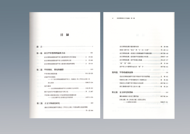 《故宫博物院古文字论集》(第一辑)是故宫博物院“古工程”协同攻关创新平台和故宫研究院古文献研究所合作编辑出版的第一部古文字研究论集。这部论集收录相关研究成果22篇,内容涵盖:故宫甲骨整理理论与方法,甲骨传拓、摹写与摄影,古文字与商史研究,甲骨收藏与流传、金文研究与著录等。