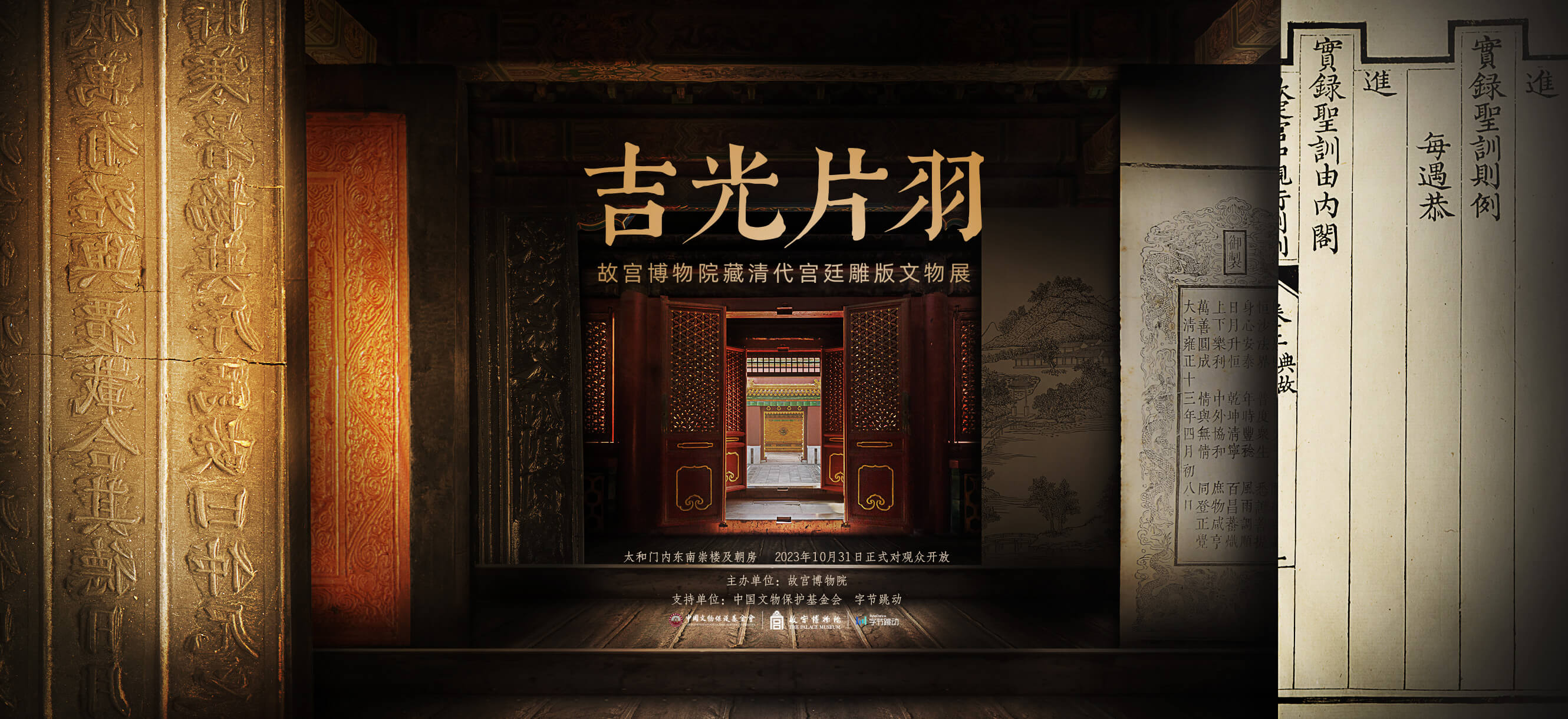 2023年10月30日,“吉光片羽——故宫博物院藏清代宫廷雕版文物展”开幕式在故宫博物院敬胜斋举行。文化和旅游部党组成员、故宫博物院院长王旭东,中国文物保护基金会理事长、国家文物局原党组书记、局长刘玉珠,北京字节跳动公益基金会理事长张羽出席活动并致辞。故宫博物院党委书记、副院长都海江,文化和旅游部公共服务司副司长张金宁,国家文物局博物馆与社会文物司副司长何晓雷,国家图书馆常务副馆长、国家古籍保护中心副主任张志清等出席开幕式,并为“雕版馆”揭牌。故宫博物院副院长任万平主持开幕活动。