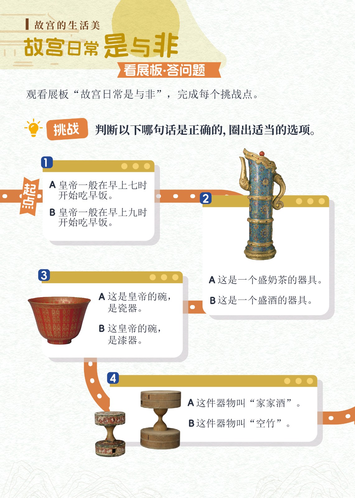 与我们熟悉的日常生活相比,明清宫廷里的生活有什么异同之处呢?让我们尝试判断一下吧!