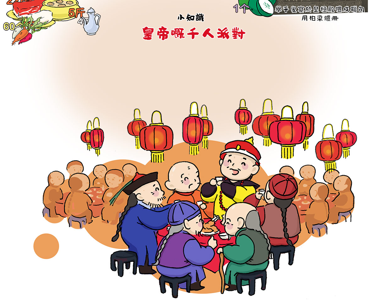 縱觀清代,最大規模嘅宴席就係幾次千叟宴啦。千叟宴首創於康熙皇帝60大壽嘅時候,邀請天下嘅老人同皇帝一齊喺圓明園入面嘅暢春園過壽。乾隆皇帝更加對辦宴席樂此不疲,廷臣宴、宗室宴、茶宴、大蒙古包宴、外藩宴,全部都係佢嘅心頭好。就連幾千人同享嘅千叟宴,佢都辦過兩次。尤其係佢85歲嗰陣辦嘅呢場千叟宴,可謂盛況空前,共有5900幾位老人參加宴會。除咗令乾隆太上皇開心,呢場宴會更重要嘅目的係向人民傳播敬老愛老嘅觀念。所有參加千叟宴嘅老人,除咗喺皇宮入面享受一餐滿漢全席,接受王公大臣甚至皇帝本人嘅敬酒之外,仲可以得到皇帝御賜嘅銀製養老牌,分別喺74歲同85歲嘅時候,次次都有幾千名。
