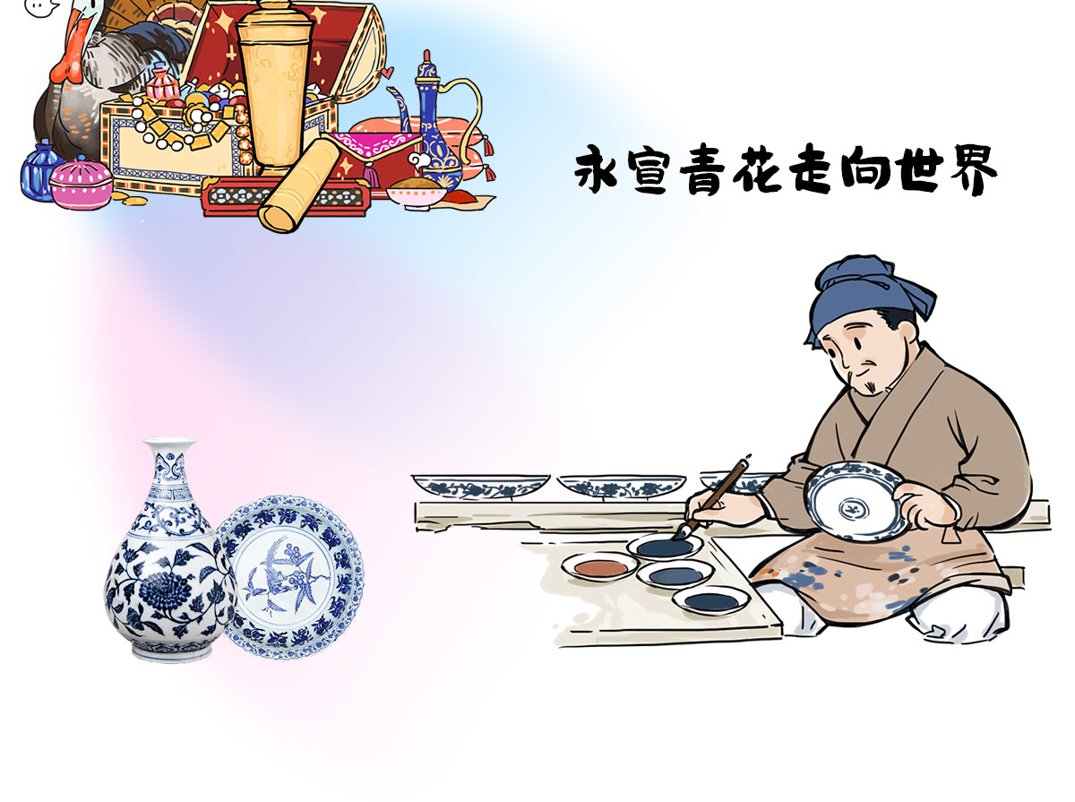 你一定唔知,青花瓷嘅發展其實都係得益於鄭和下西洋。喺佢帶返嚟嘅土產中,有一種叫做「蘇泥勃青」嘅瓷繪原料同其它幾種彩釉原料。得益於呢啲進口原料,加埋瓷器工匠們嘅精細製作,先至令到青花瓷喺明朝永樂、宣德兩朝大力發展,形成咗中國青花瓷器最高水平嘅代表——永宣青花。